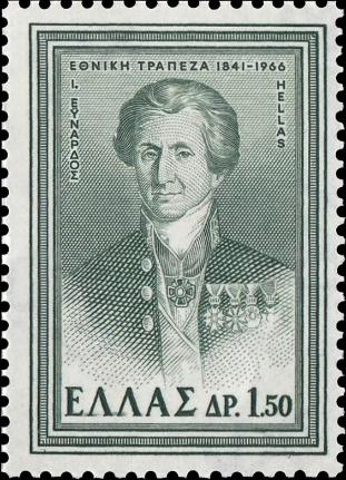 26 Φεβ Γραμματόσημο του έτους 1966, κλάσης 1.50 δρχ. από την Αναμνηστική Έκδοση για τα 125 χρόνια της Εθνικής Τράπεζας